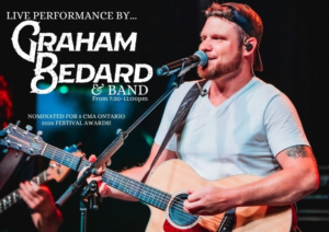 Graham Bedard is not a name you’ll soon forget. Nominated for 5 CMA Ontario 2026 Festival Awards and a proven force on the Ontario country circuit, Graham and his band deliver the kind of performance that fills a room and keeps people on their feet from the first song to the last.