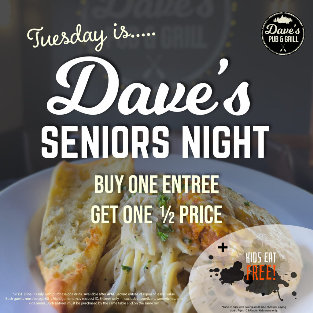 There’s something to look forward to every night of the week at Dave’s! Whether you’re joining us for a family dinner, a night out with friends, or an easy weekday meal, our daily specials make it the perfect time to stop in, relax, and enjoy.