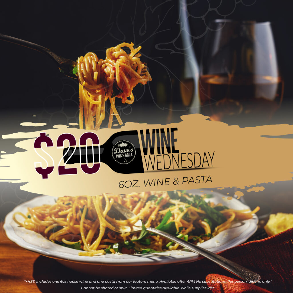 Midweek feels a lot better with wine and pasta! For $20, enjoy a 6oz glass of our featured wine paired with your choice of pasta from our special menu. We highlight a different wine each week — follow us on social to see what’s pouring!