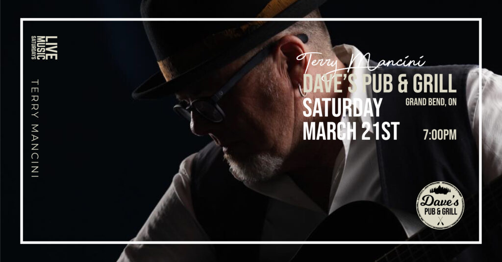 Join us on Saturday, December 6 at Dave’s Pub & Grill for Live Music Saturdays featuring the always-popular Terry Mancini. Terry delivers a warm blend of classic covers and acoustic